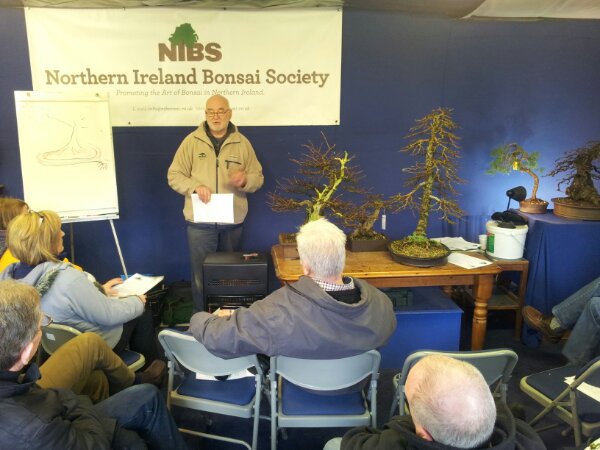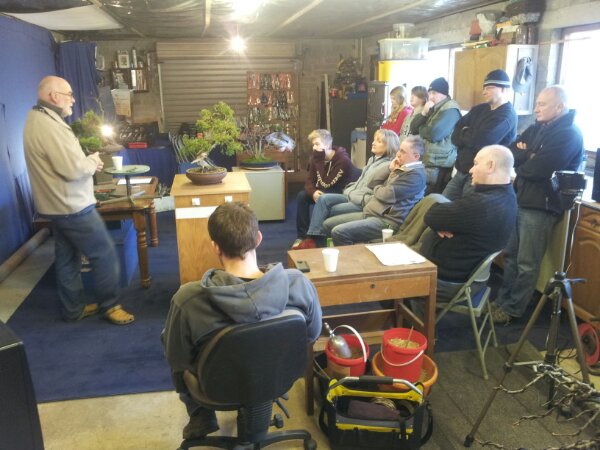 Here is the start of our Sunday Workshop. As alway Peter talks through everyones tree, or trees, that are to be worked on.