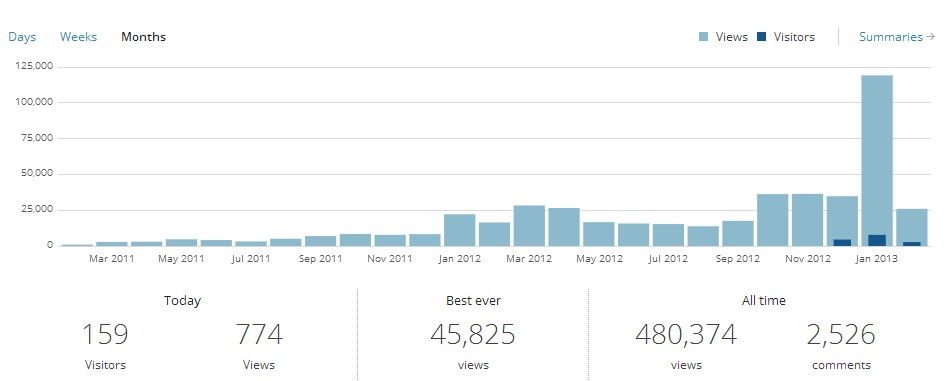 Two years!! Hard to believe. It was slow to gain momentum but then about 10 months in, things surprisingly took off. I reckon at my current rate of hits I’ll see 500,000 hits in about a month which is truly staggering.