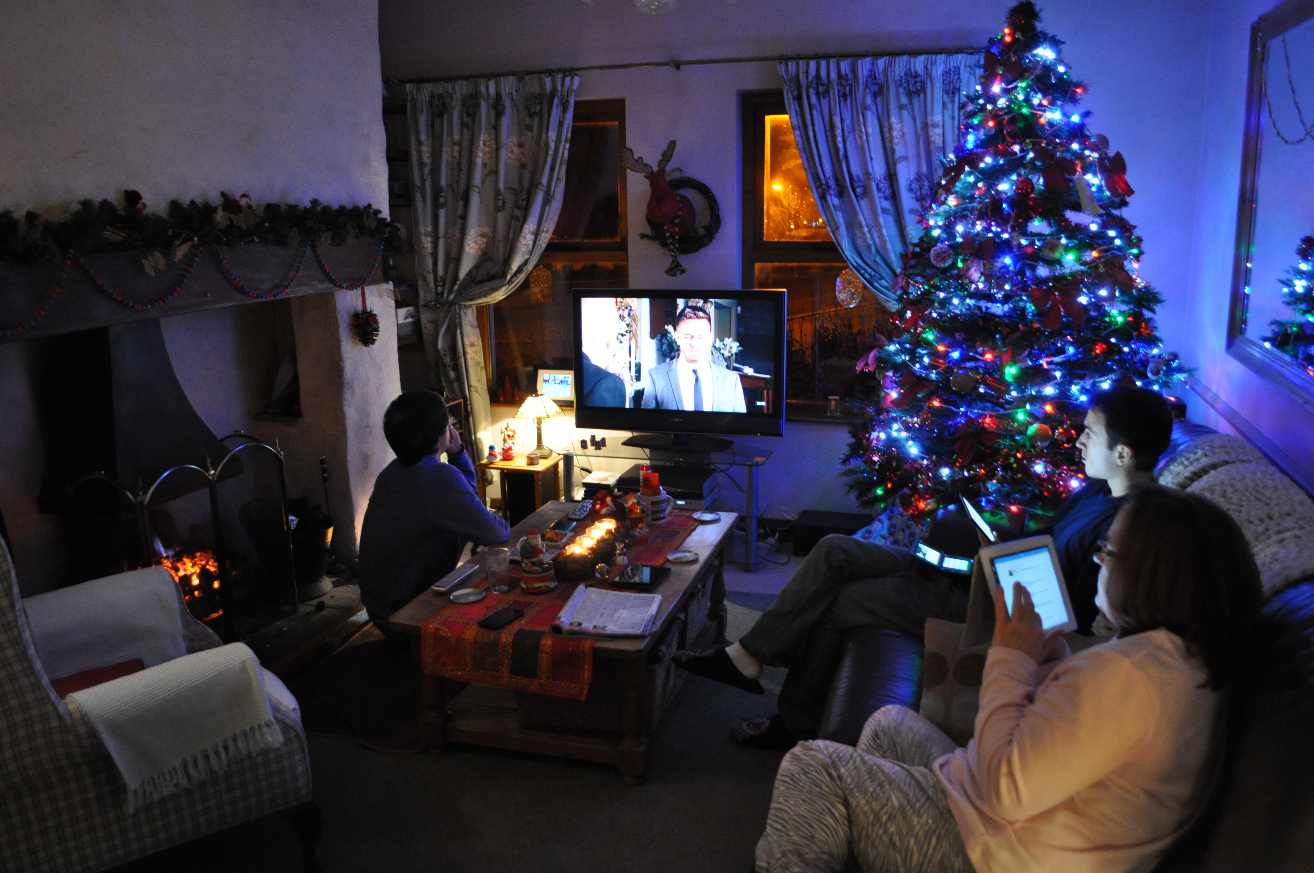 I had a great/quiet Christmas at home with my family as this snap of an evening in front of the TV shows. Dinner over, fire lit, candles burning, tree lights illuminating, cosy or what 🙂 All that’s missing from this photo is the two dogs who are normally fighting with my son for the spot in front of the fire.