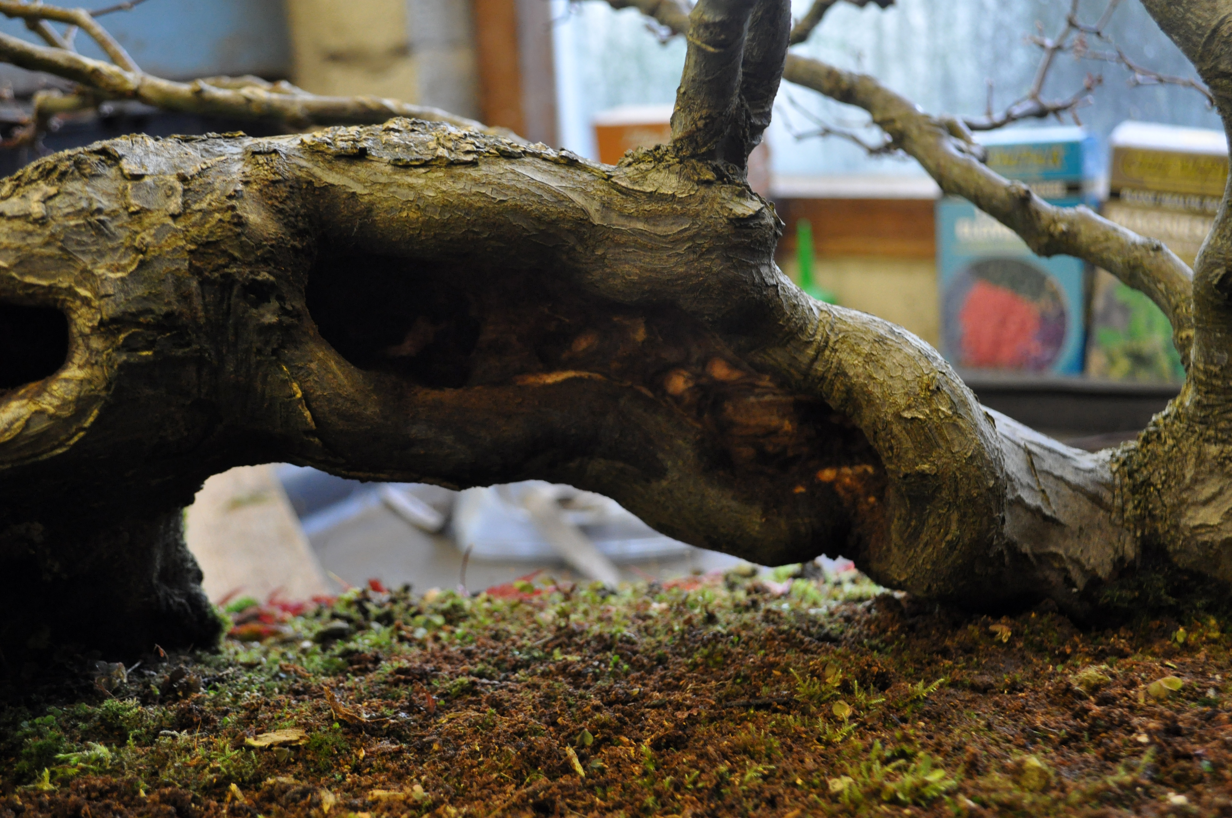 Only three shohin bonsai compositions this year were displayed. In early January there is a huge shohin bonsai exhibition which fills the entire building.