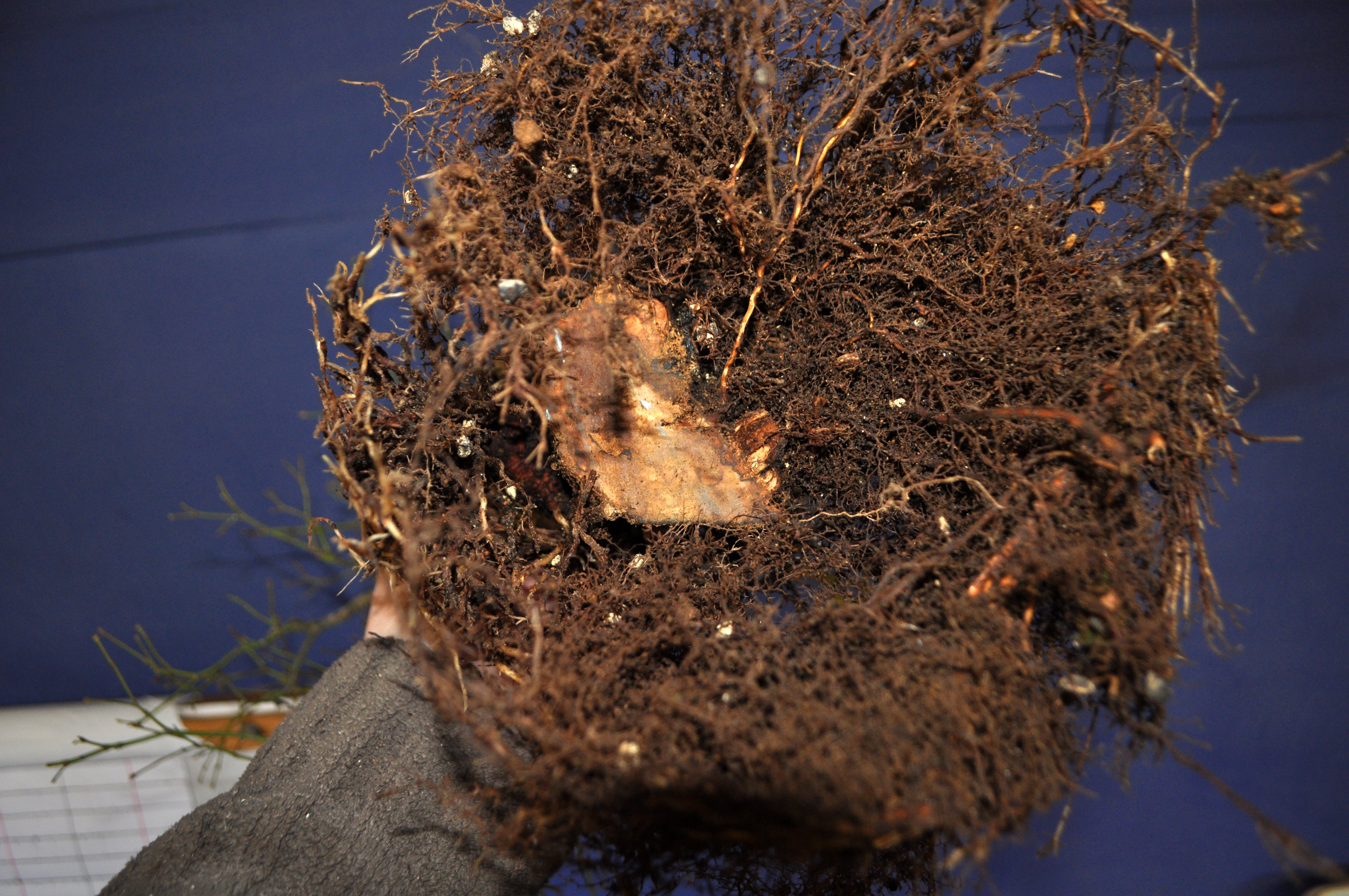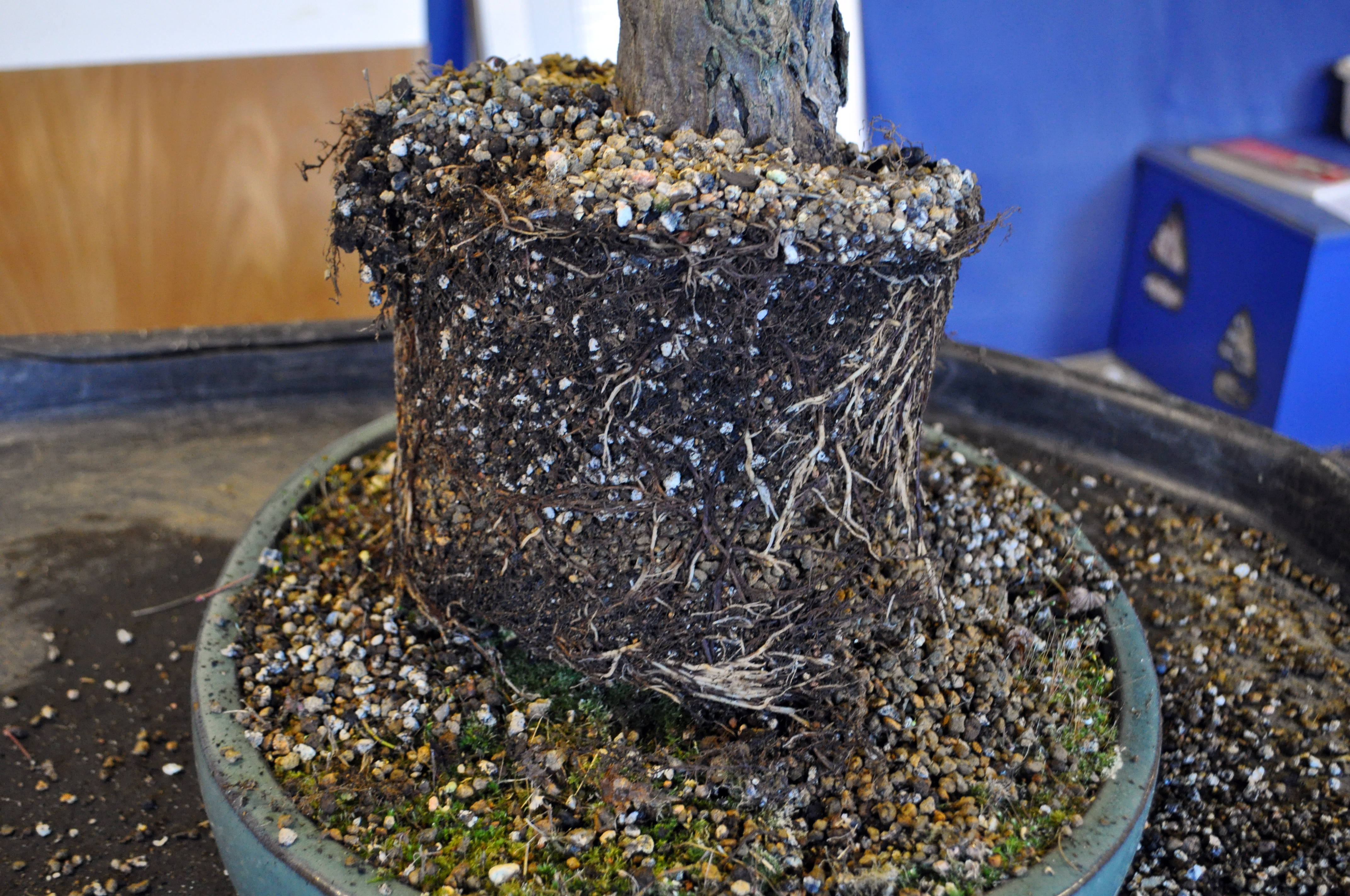 Potted up in a wash hand basin to allow it to gain some momentum this year. The original roots on inspection were very poor, I feel that if I hadn’t layered this tree it would already be dead. Which would be a shame with the stunning Autumn Colour it produces.