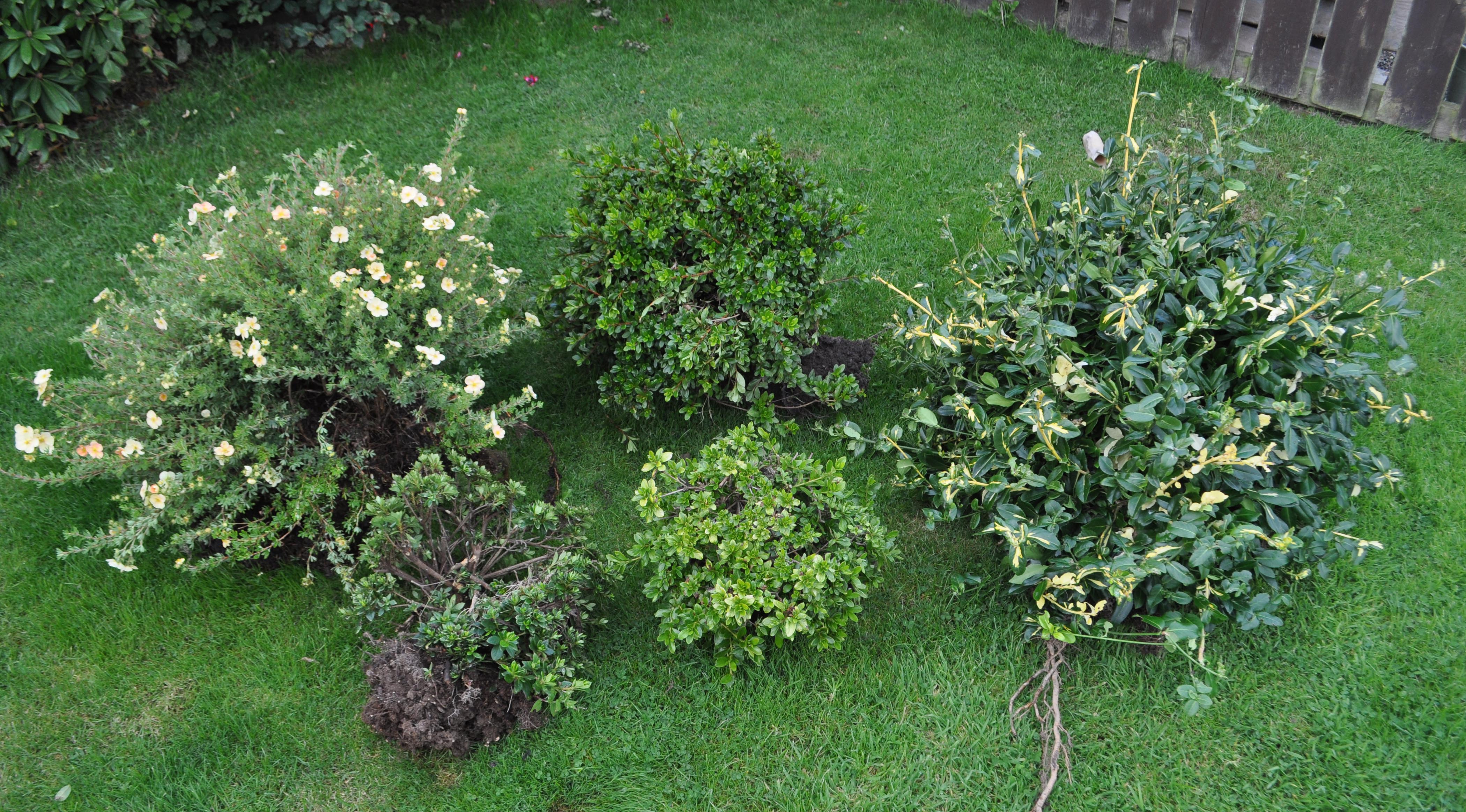 Not one to miss an opportunity, I woke up a few days ago to hear next door’s gardener ripping out all the plants from their garden. I went out and had a word and managed to salvage three azaleas, a Potentilla and a Euonymous. Azaleas are quite tasty 🙂 They’ve been cut back hard every 2 years for the last 15 years Better with me than in a skip 🙂