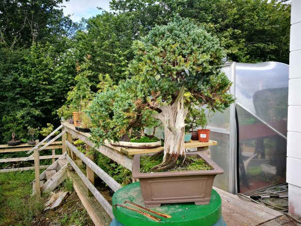 In 2019 the tree moved about 200 yards from Stephen’s home to Kris’s place. The size and weight of the tree meant that Stephen moved the tree on and who better than a friend who is easy to visit. Today we masked up and got down to the task of repotting the tree. It got a trim first. A good time to make cuts as having the roots worked means they won’t bleed. Here’s the full process step by step.