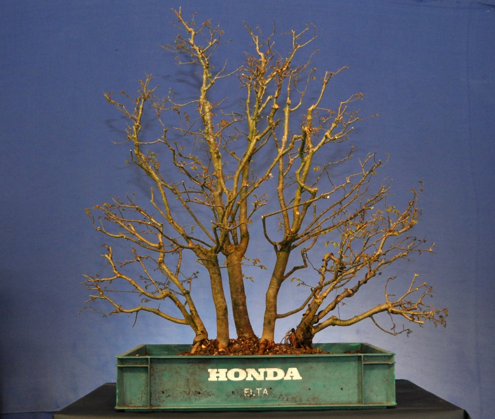 And then this Zelkova group got taken out of it’s training box and potted into a more suitable pot. Two new smaller trees were added at the rear to help the image.