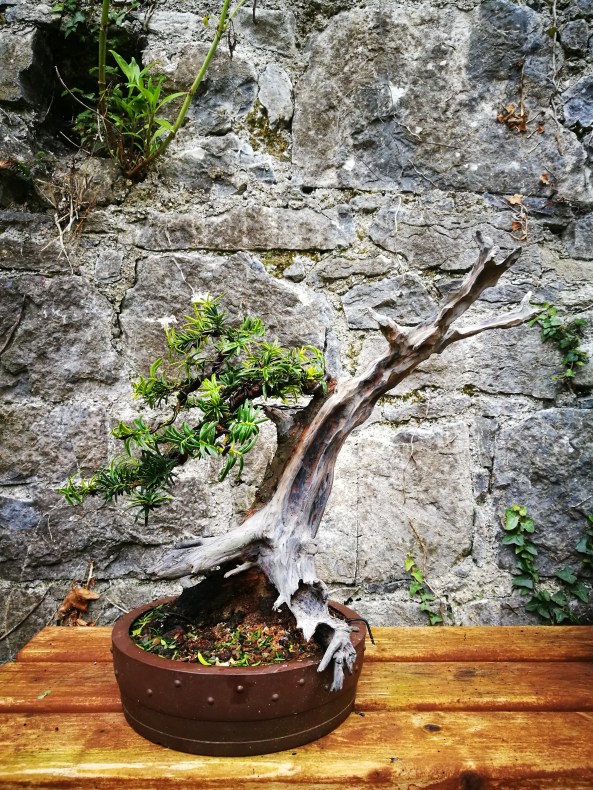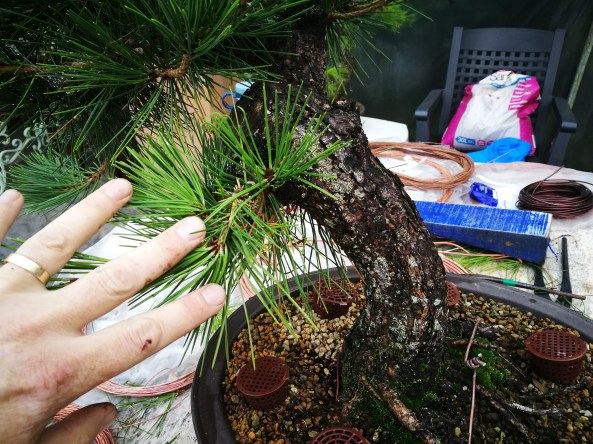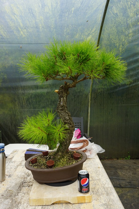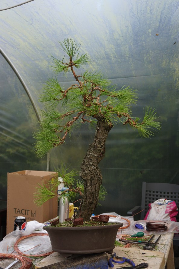 A friend has some Scots Pine that he started from seed over 30 years ago and have never been out of a pot of some sort in that time. They’ve have good years and bad during that period and this month I’ve been sorting them out and doing a little wiring for him.