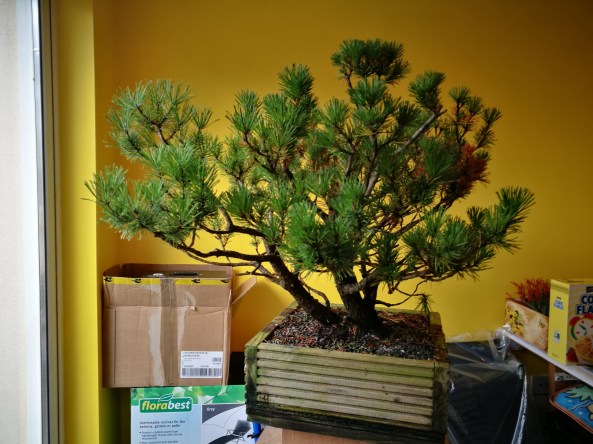 Here is a Mugo Pine that he also collected from his own garden last year getting a first styling.