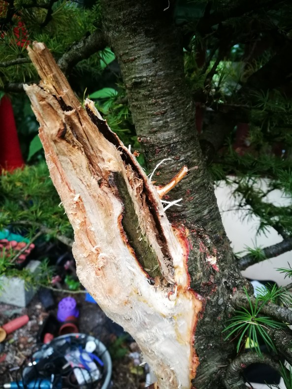 The lower branch was left to develope into a second trunk and also improve inverse taper. It can always be removed at a later date.
