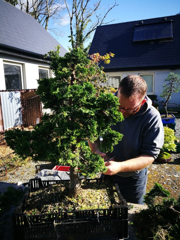 The next day was at Demot’s, again a first styling on a tall Scots Pine and some tweaking on a few Junipers.
