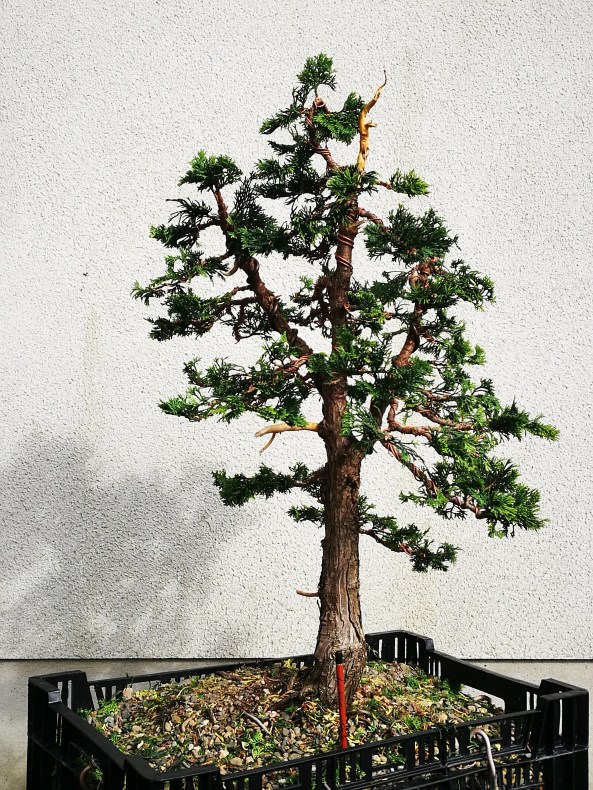 I keep telling my bonsai friends to practice. We don’t have an endless stream of trees to work nor are all those trees going to be high end. However taking a simple tree like this with a few issues and going through the design process can be beneficial. This took 30 minutes.