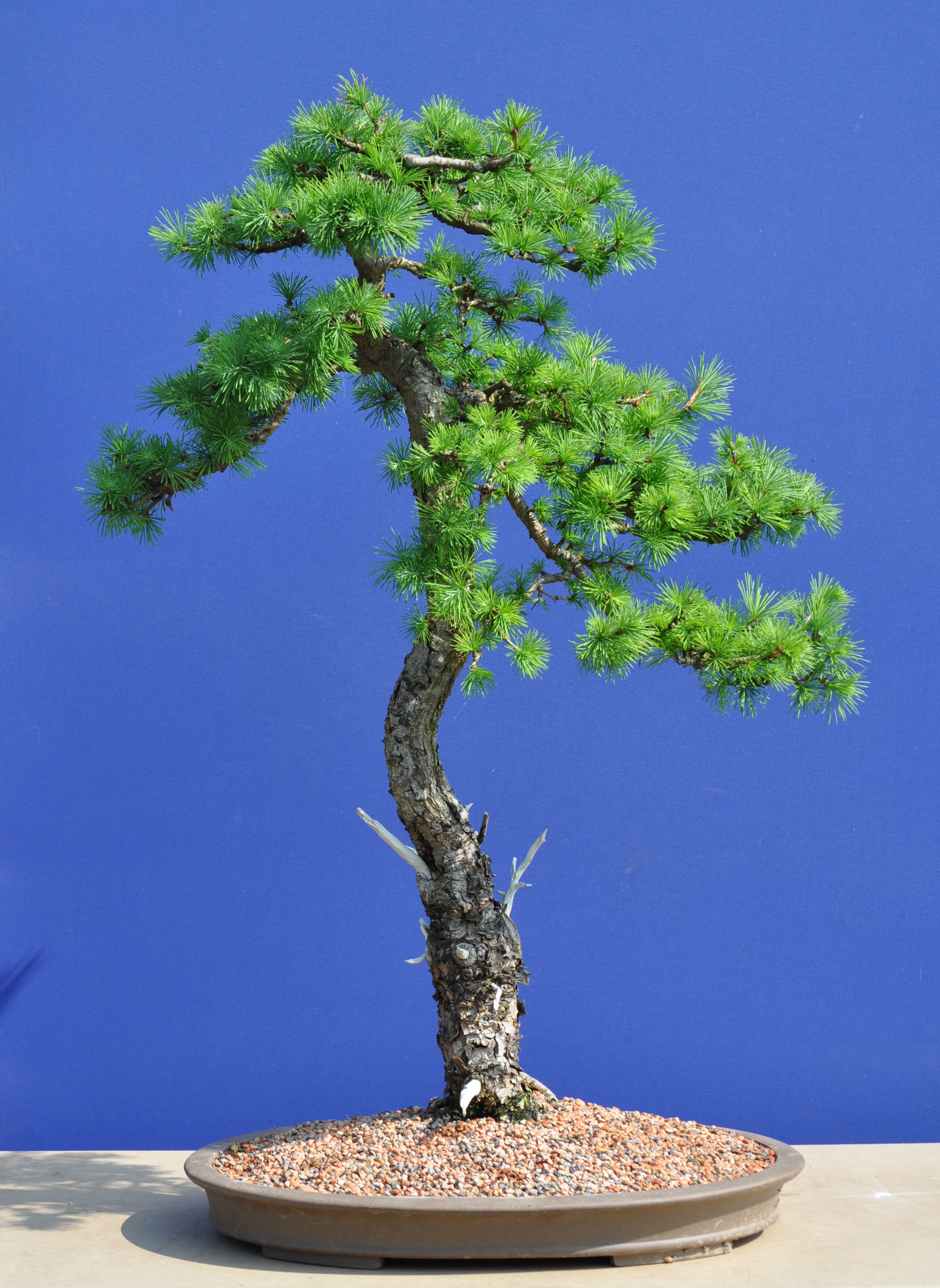 As many branches had risen a rewiring of most of the primary structure was needed. I find larch need this every 3-4 years even when established. Other work included the removal of branches that had over thickened and replacing them with younger finer ones. Probably the biggest issues with larches is their ability to fatten fast if over fed or left to run too long during the year. Building up a good structure to allow these to be replaced on a cycle over the years by younger finer branches is so important on larch, more so that other species.