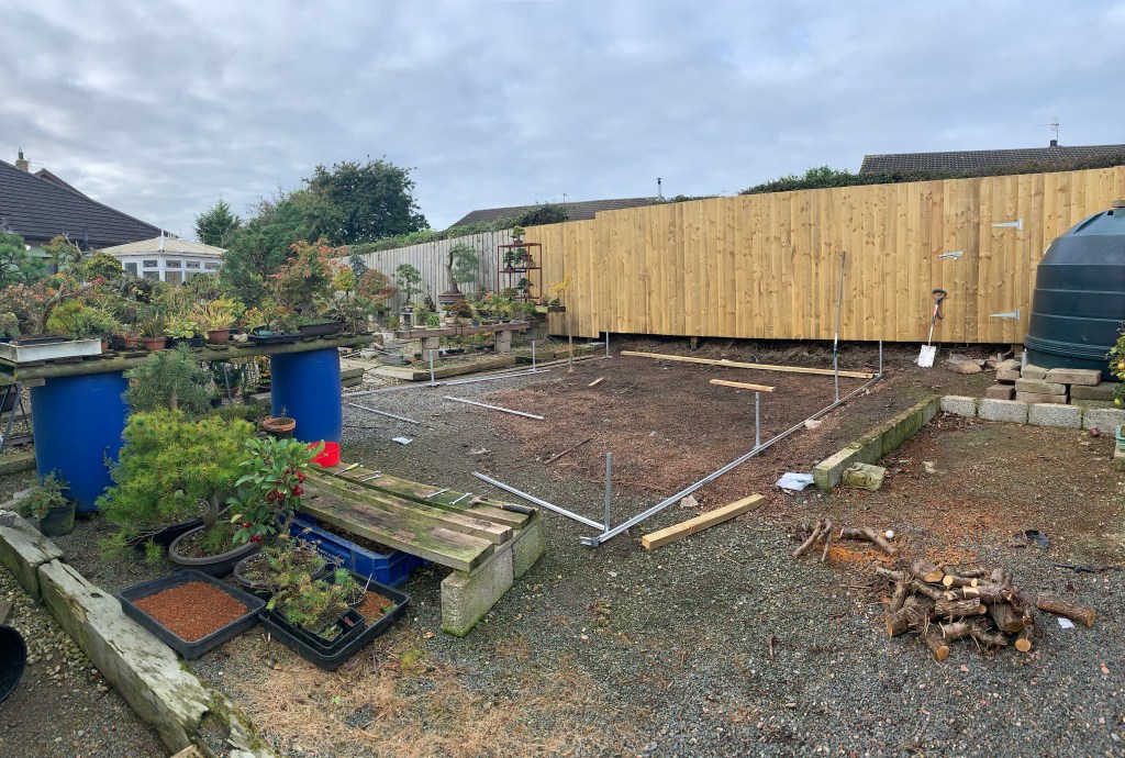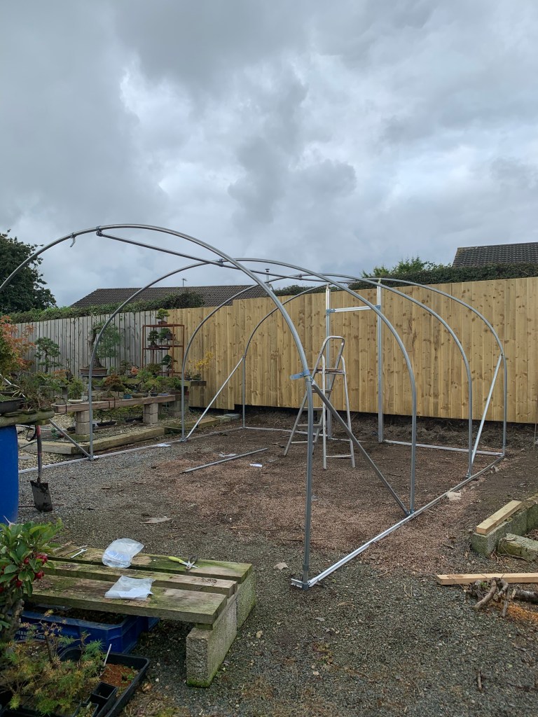 So far with storms seeming to hit every other day it has stood strong. It’ll be doing well to last as long as the last one. I’ve a misting system for the yamadori still to go in and a watering system as well.
