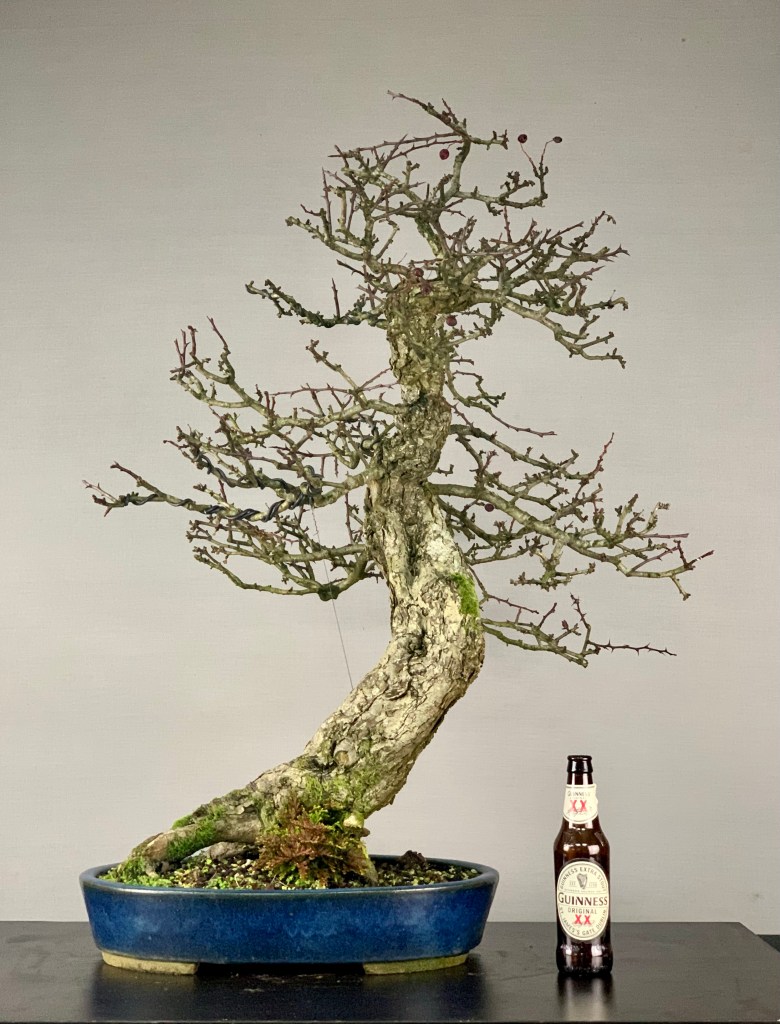It had a major repot in 2019 and sulked in a big way all that year. 2020 has been a shitty year for most of us but this hawthorn made a come back. I decided that although I like my hawthorn to have a natural angular appearance and to not over wired, this tree needed adjustments. The branches had sprung a bit and a slight angle change at the repot meant things weren’t quite in place.