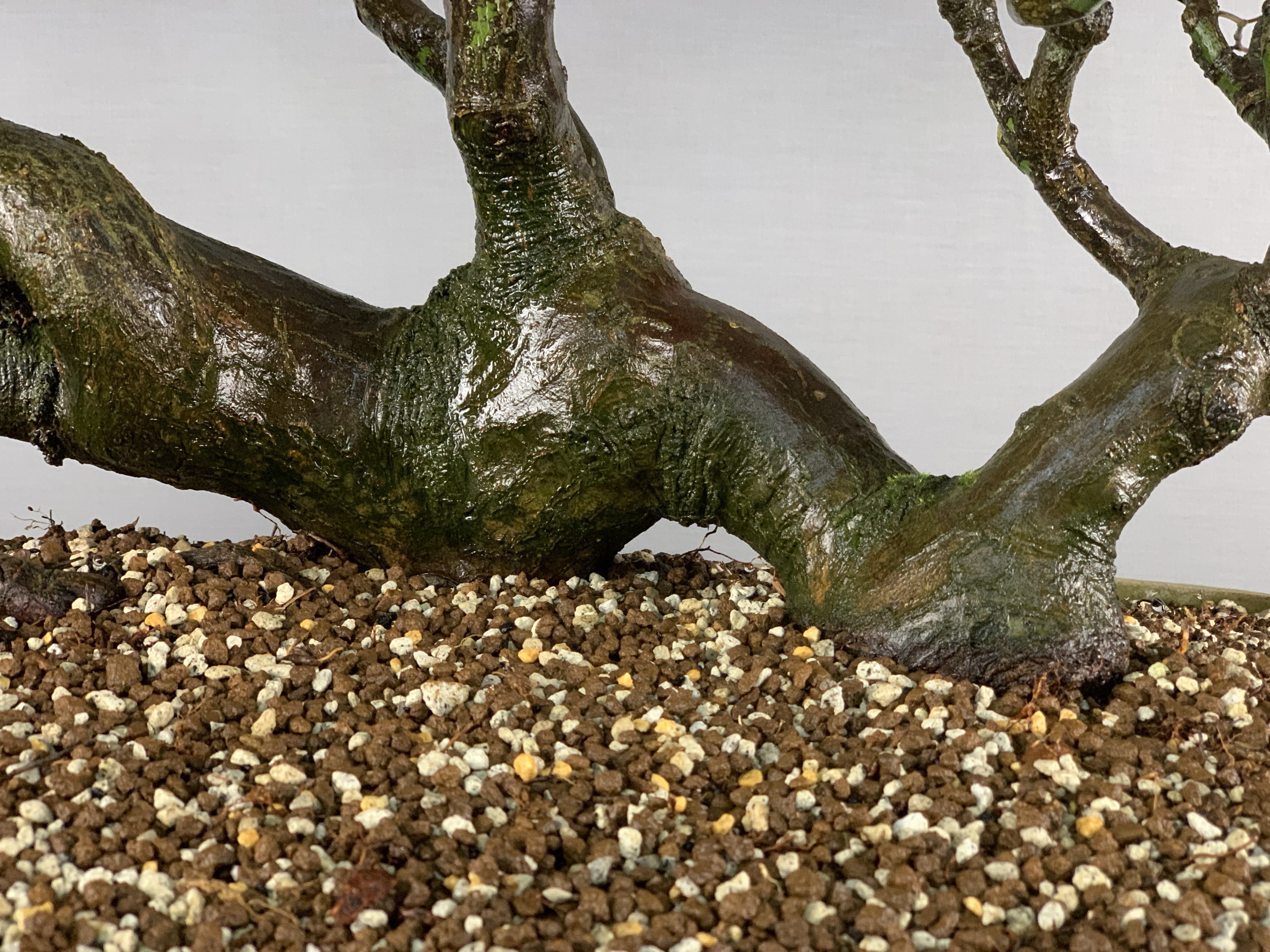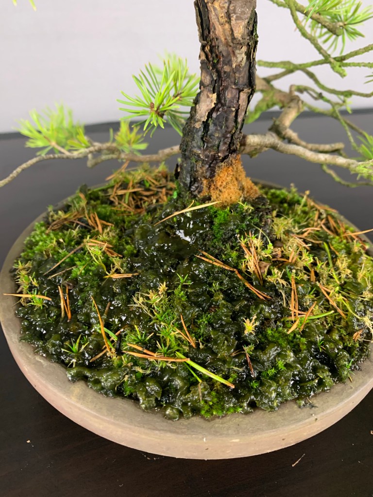 One of issues currently is drainage. When you see all of this crap on the surface you know that it’s way too wet for a pine to thrive. The mix was good but has broken down to the point where a repot in the spring is required.