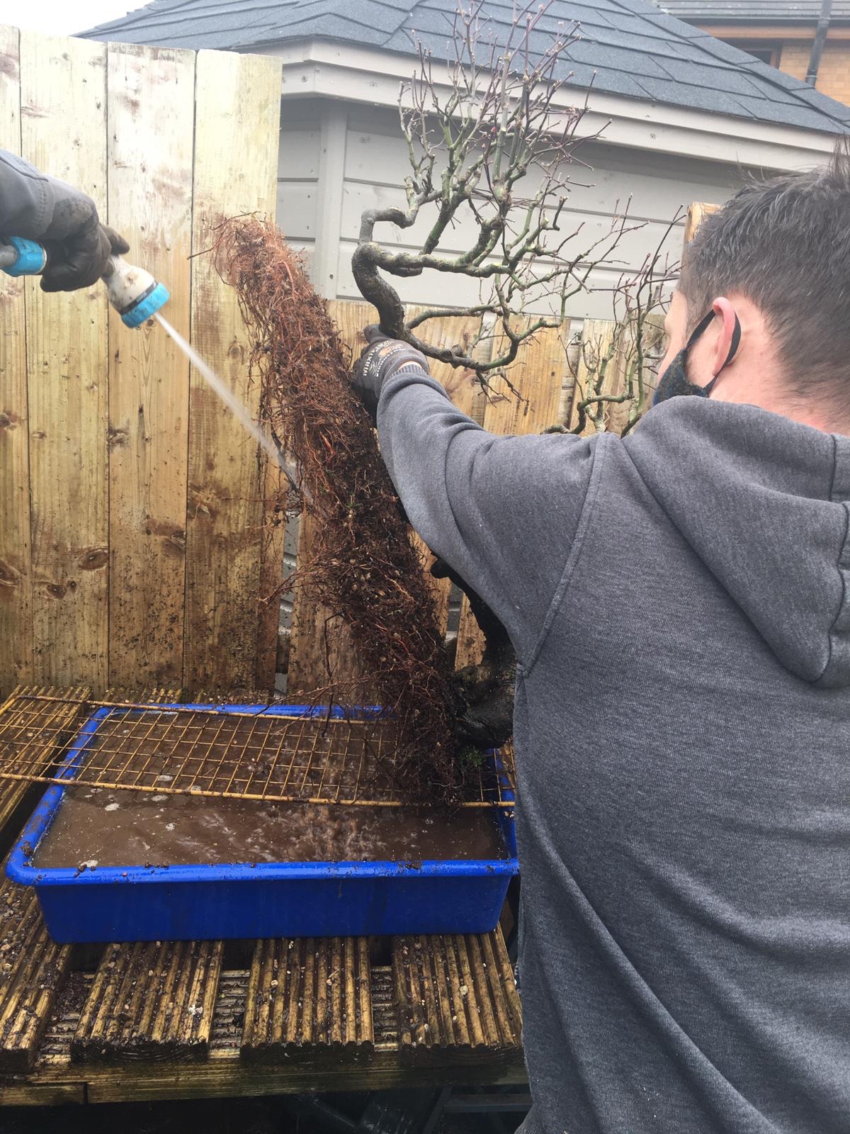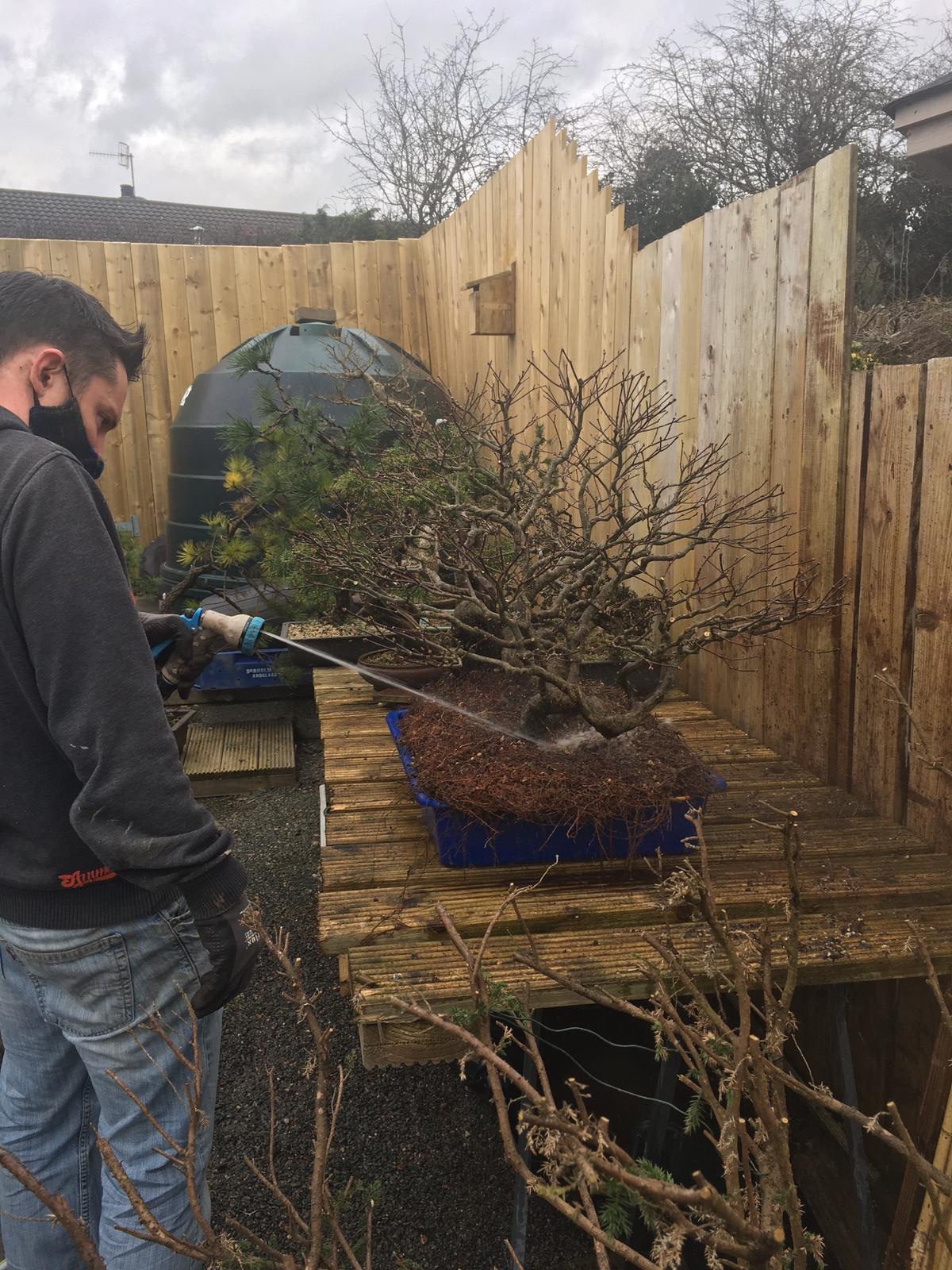 The tree needed a good clean before work to clear the last hold out needles and remove the algae starting to clog up the branches.