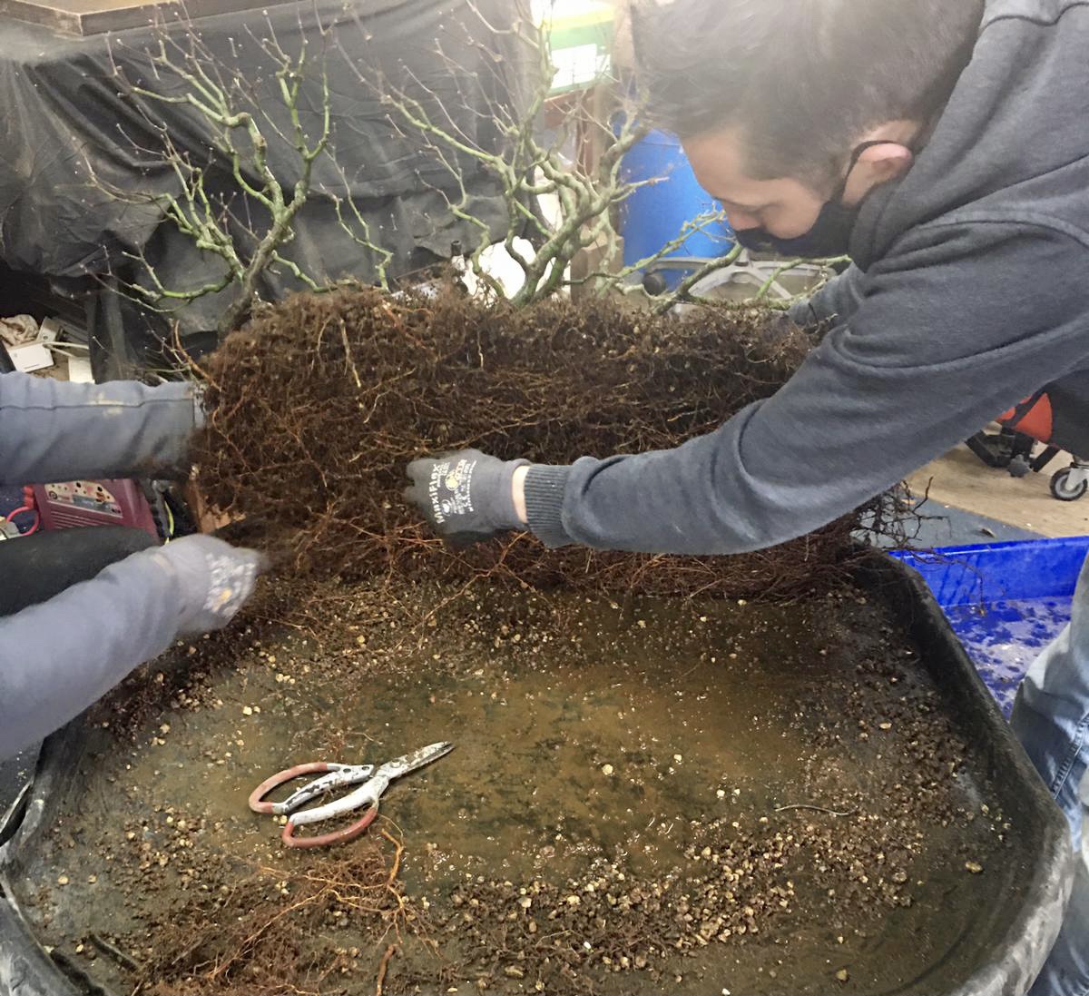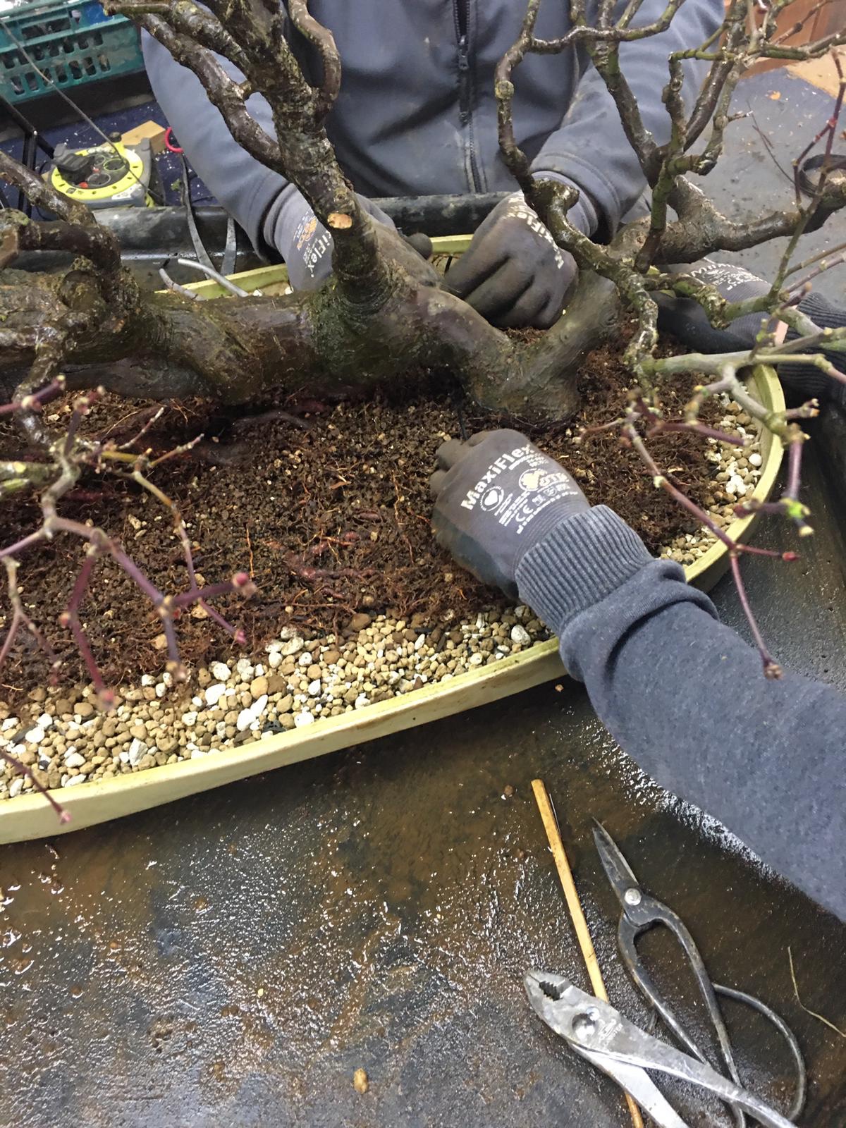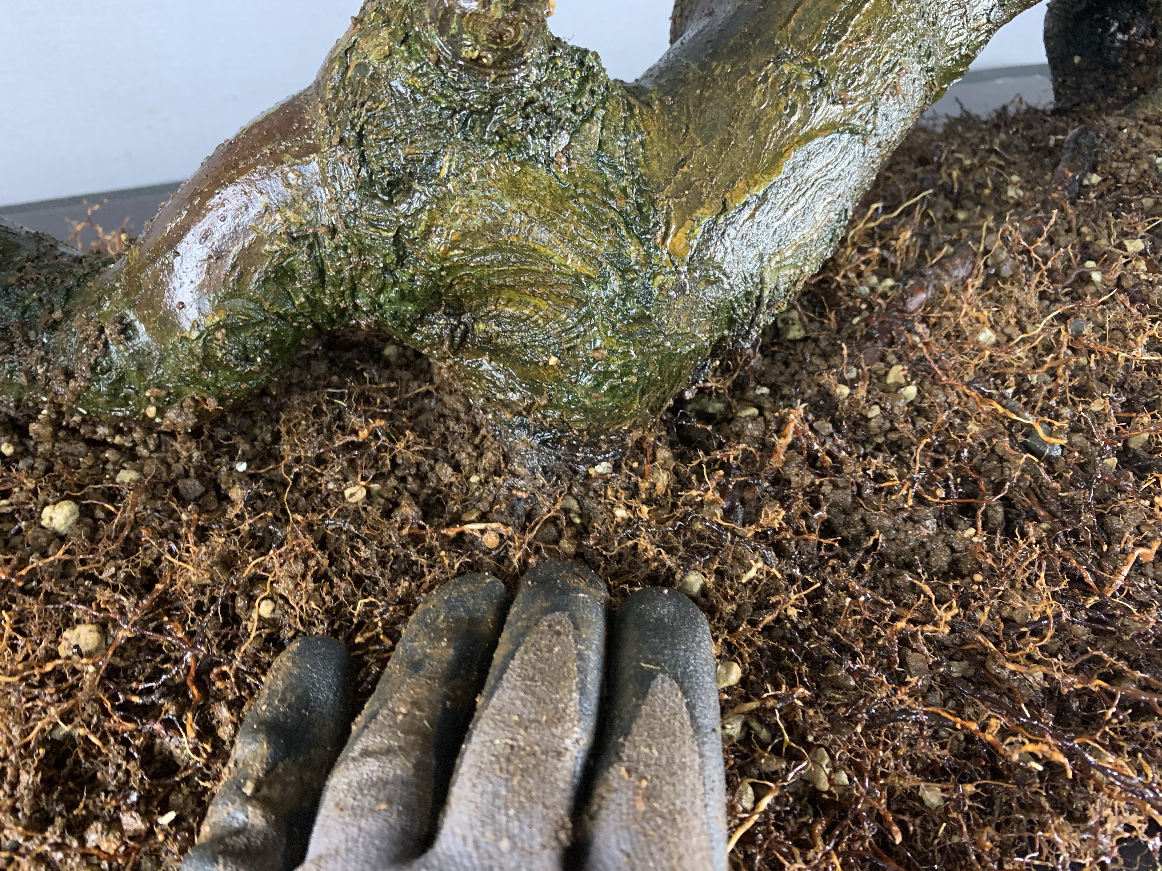 Hinoki Cypress repot today with Alan. A very nice tree with an view from below worth checking out.