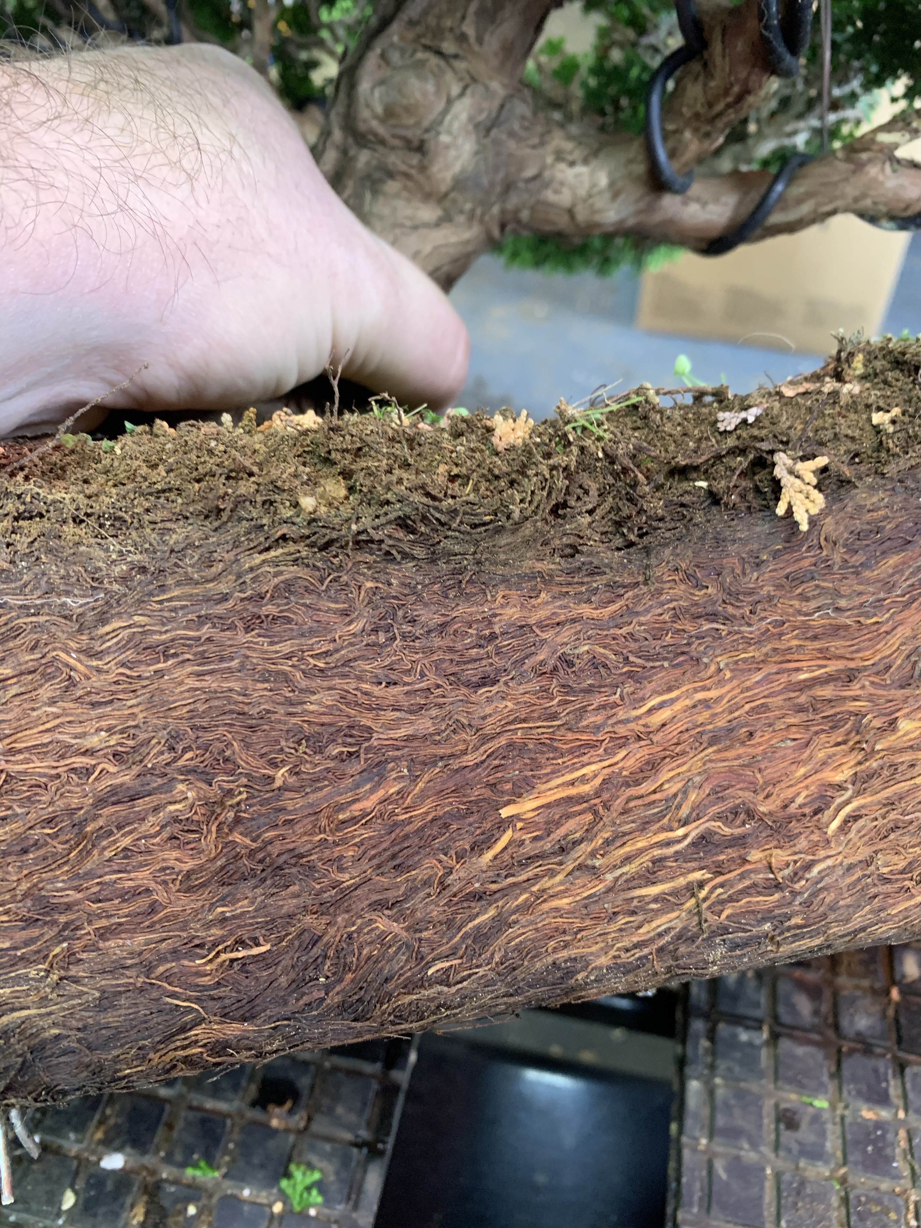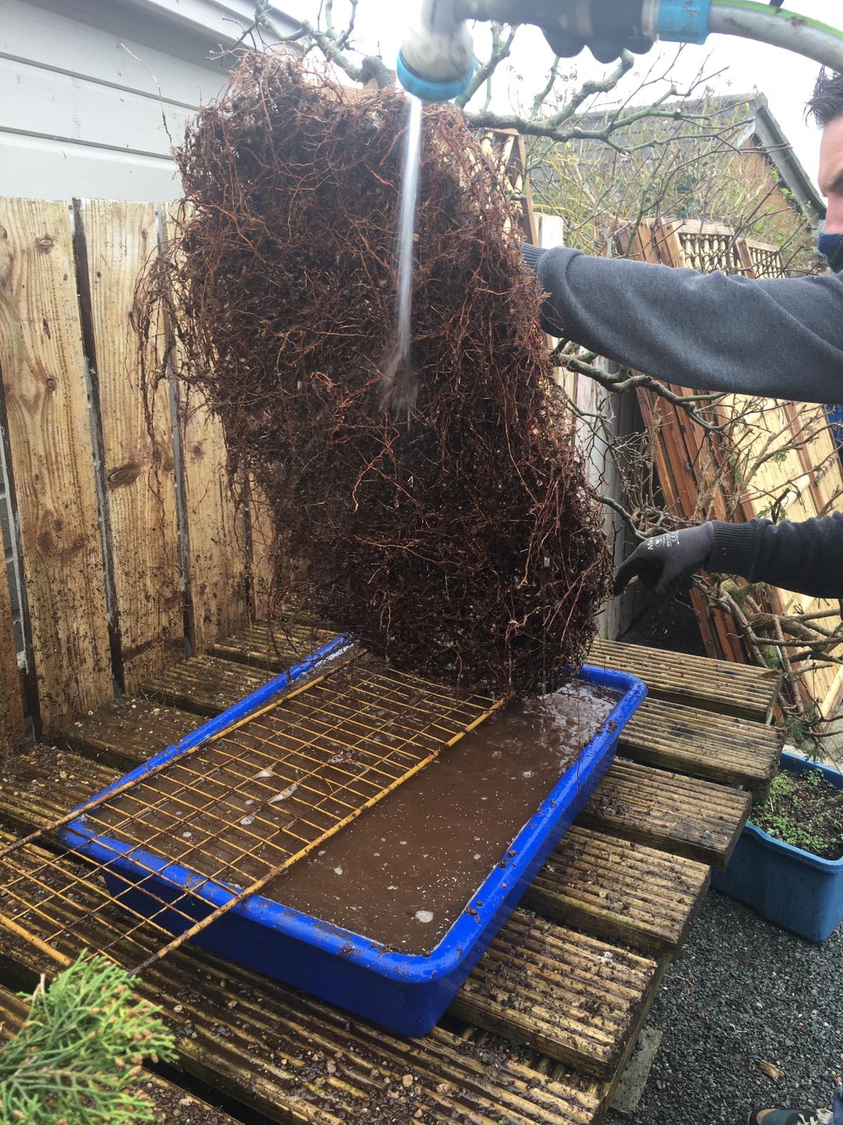 She wanted the tree to go to someone who would bring it back to its bonsai journey and I was offered the tree. Myself and my friend Stephen went to collect but had been told to leave the pot. Now look at the photo above and imagine getting that out of the pot it had been in for years!