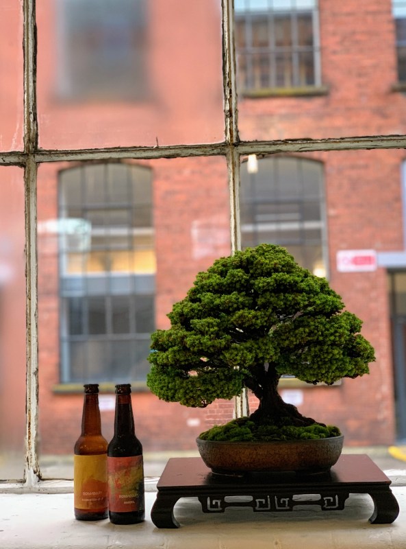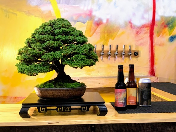 On Sunday I cooperated in an event with Boundary Brewing in Belfast. ‘Beer and Bonsai’ brought together two of my favourite things and helped spread to word about both in the local area. This was not about sales or money for me, just friendship and promotion. Starting at 4pm I arrived a little early and set up trees for those attending to view. I had three large window spaces to fill as well as wanting people to get up close with table displays. I selected trees for the tables that I knew would be robust enough to take some handling but I need not have worried as everyone was well behaved.