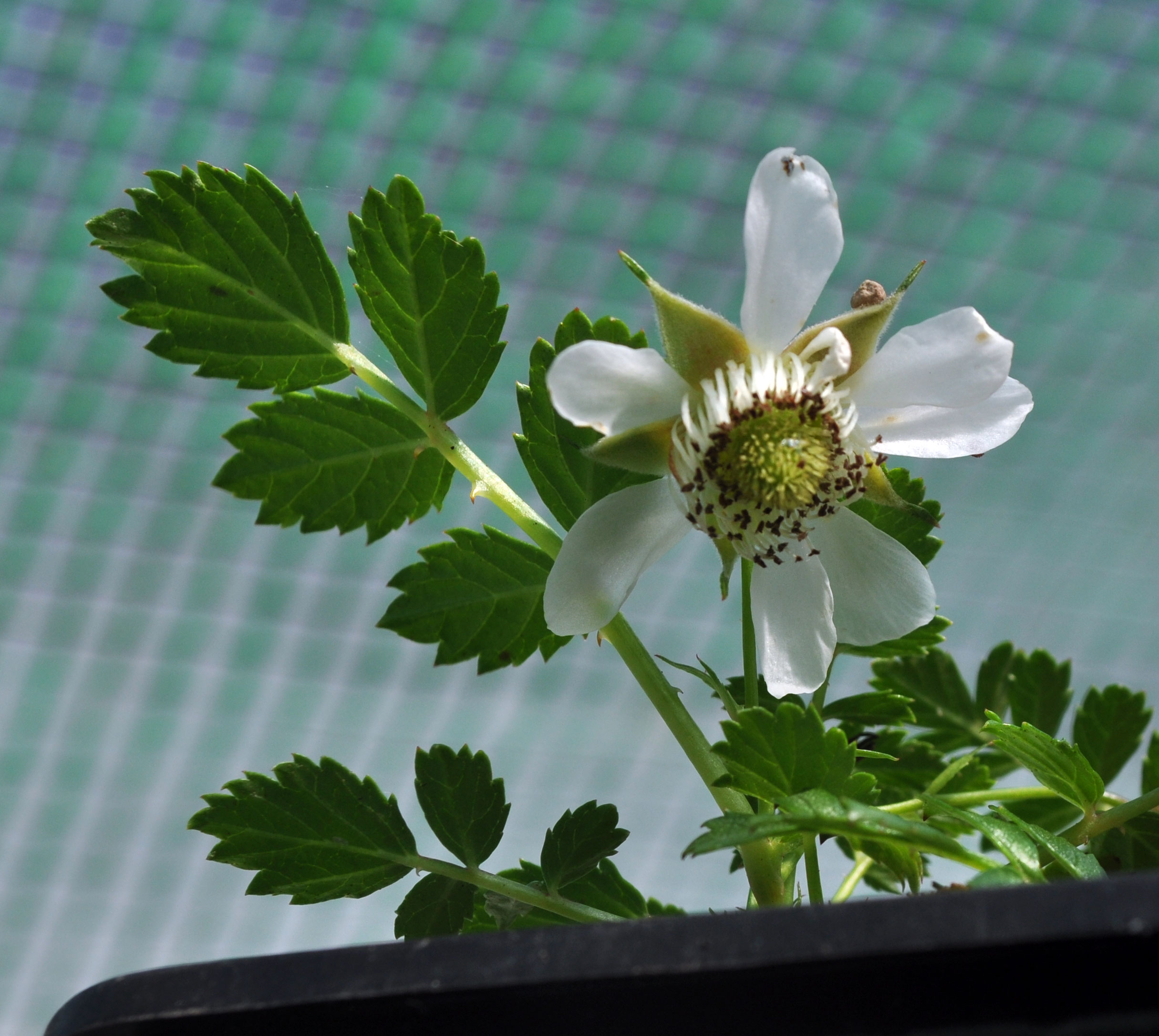 Cultivating this Rubus for accent use this year. It’s got a Taiwanese origins I believe, at least that’s what I think I was told by Pat when I got it from him! This is it’s flower. It’s staying tight in the pot which is a good sign, no big runners like a bramble!! Be interesting to see if it sets fruit. Anybody know the name of it?
